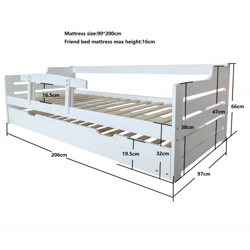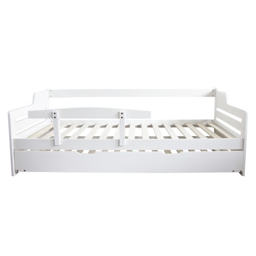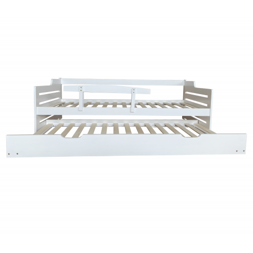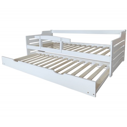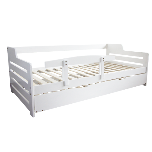 белоснежная детская кровать из натуральной сосны с выдвижным спальным местом и бортиками.